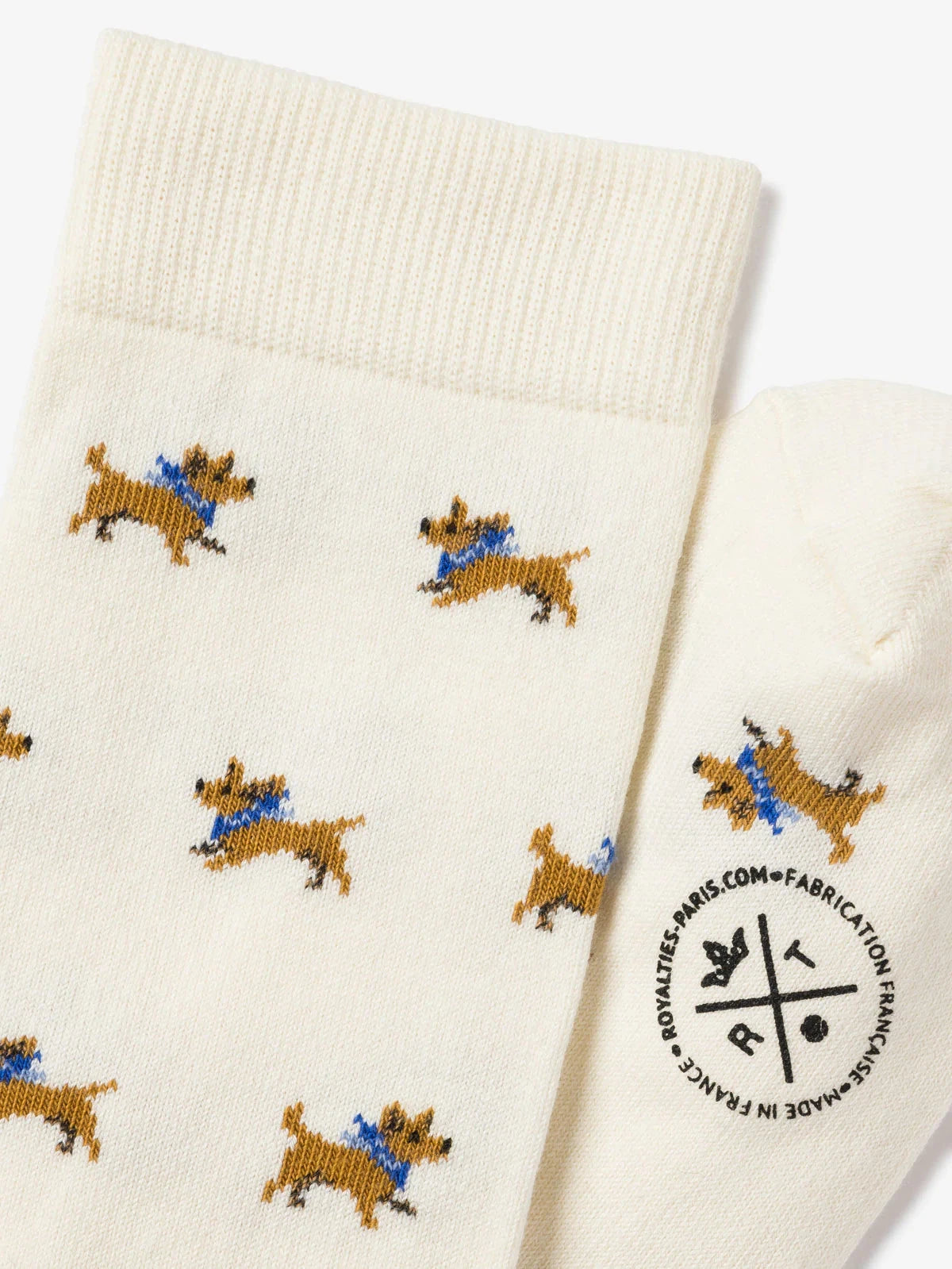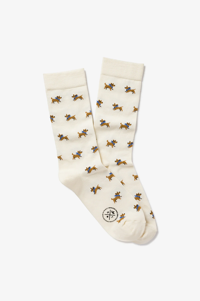 At Royalties, it's the Jack Russells that adds the whimsy. To subtly think of your faithful companion all day long, slip on these socks with small jacquard patterns.