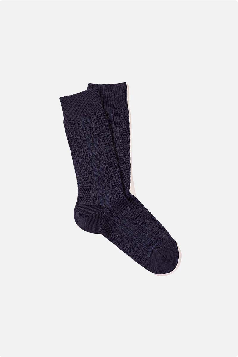 Like an Irish sweater, the knitting of this sock, called “Aran stitch”, owes its origin to the islands of the same name. The richness of the points and patterns used here echo the stories of clans, identities and the labor of men.