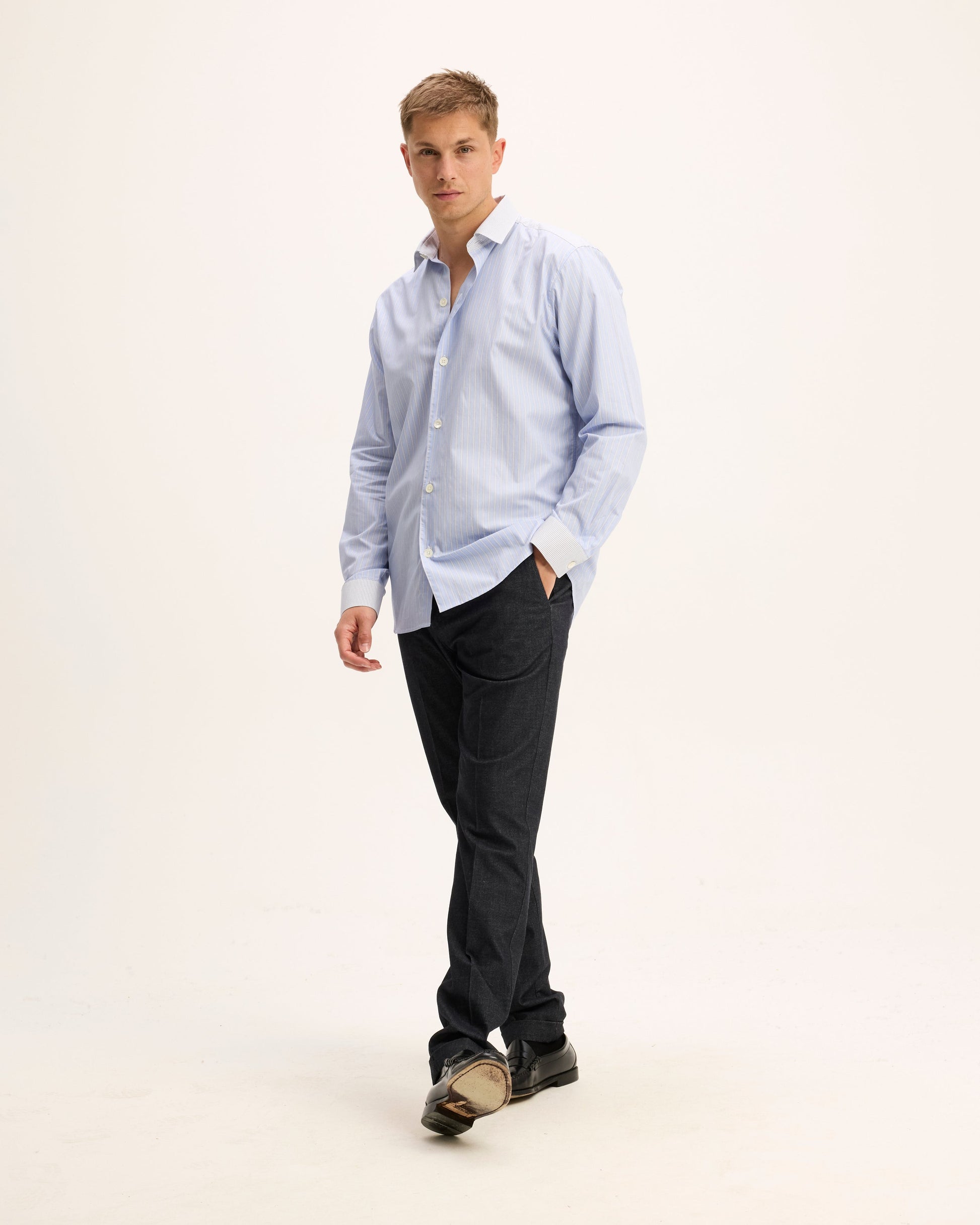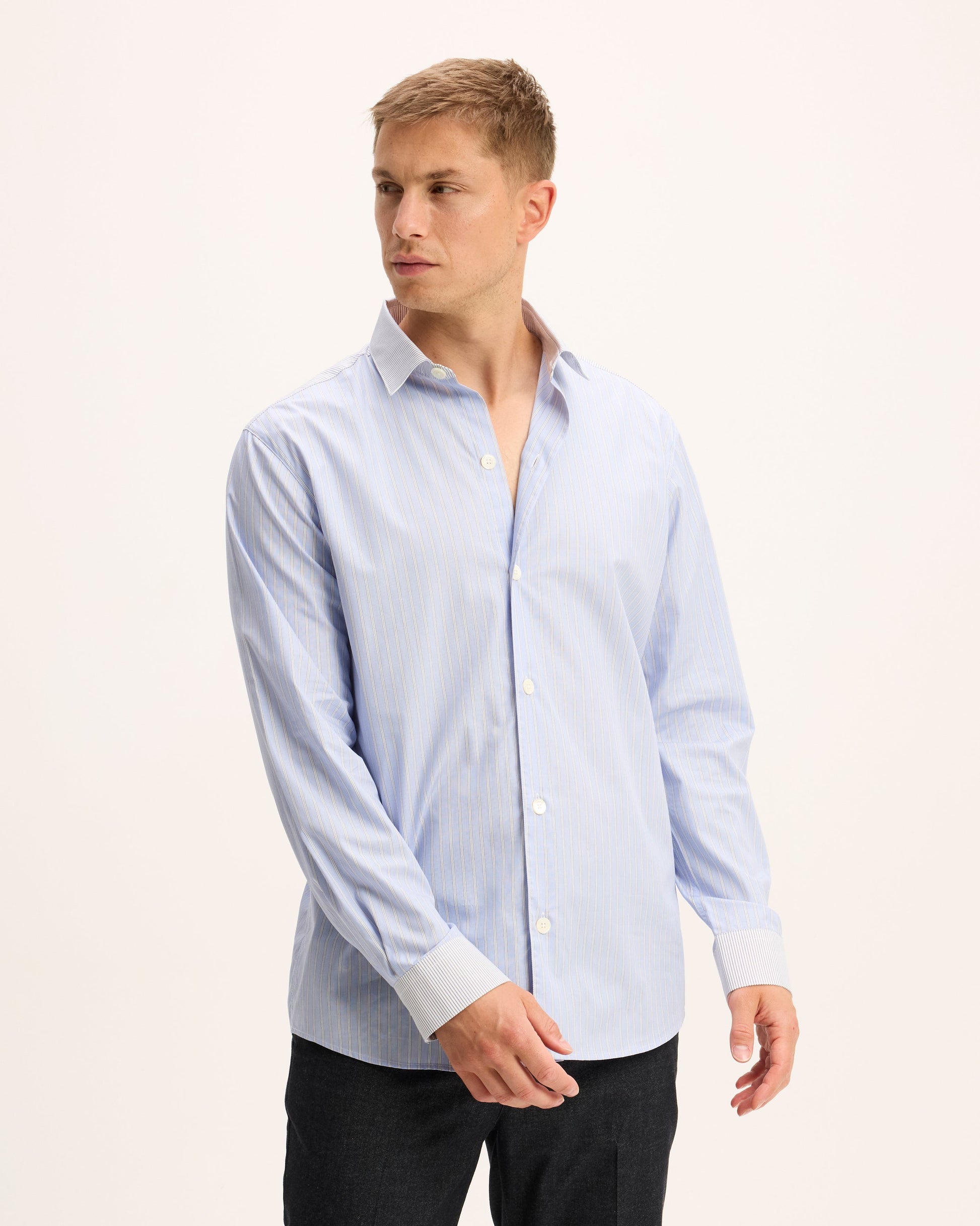 The Sblock Striped Blouse brings a fresh twist to a timeless classic. In soft light blue stripes, this shirt plays with contrast - the collar and cuff stripes run the other way for a subtle, eye-catching detail. Lightweight, versatile, and chic, it’s the perfect piece to for your wardrobe.