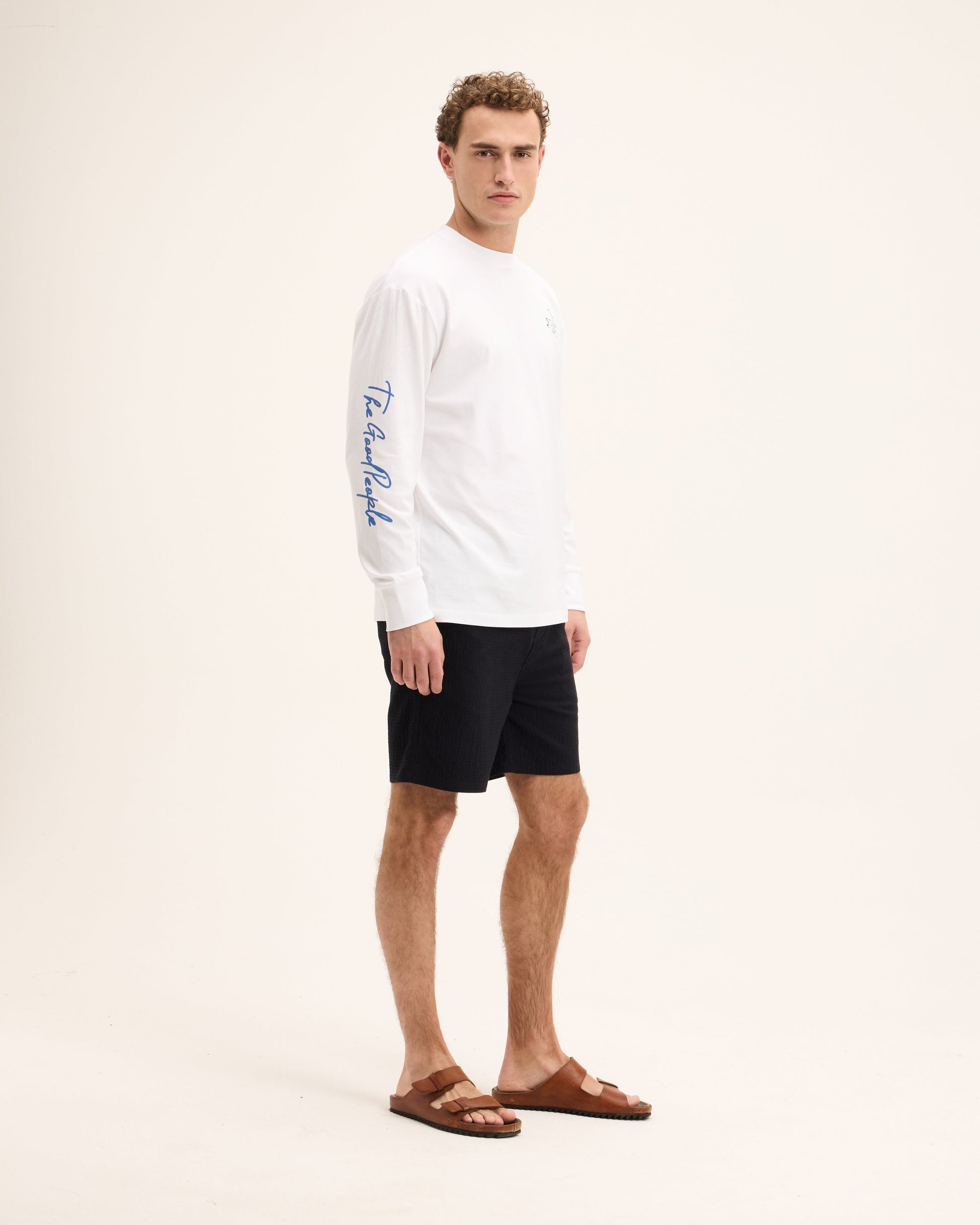 The Oliver Artwork Longsleeve features a subtle chest print and a handwritten artwork along the sleeve. The details are subtle and don't overpower the design. It is made from 100% Cotton.